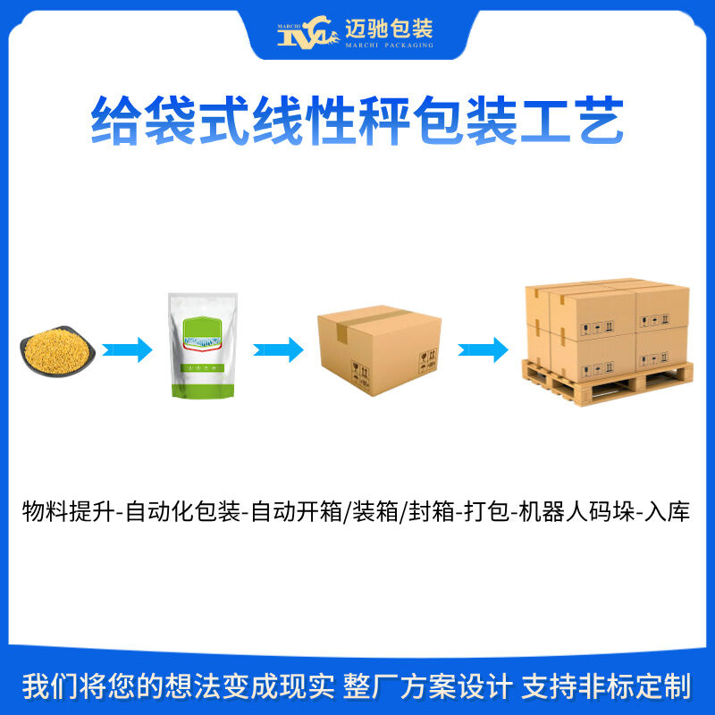 迈驰,是一家专业生产全自动给袋式线性秤颗粒包装流水线的生产厂家,无扬尘、高精度,可根据物料不同特性定制包装流水线设备,一对一定制化服务,26年包装行业经验助力生产企业将本增效,提高产能。