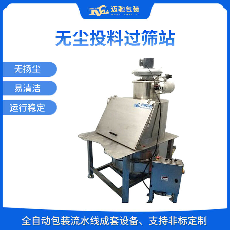 1.无尘投料站由投料平台、卸料仓、除尘系统、振动筛等部件组成;