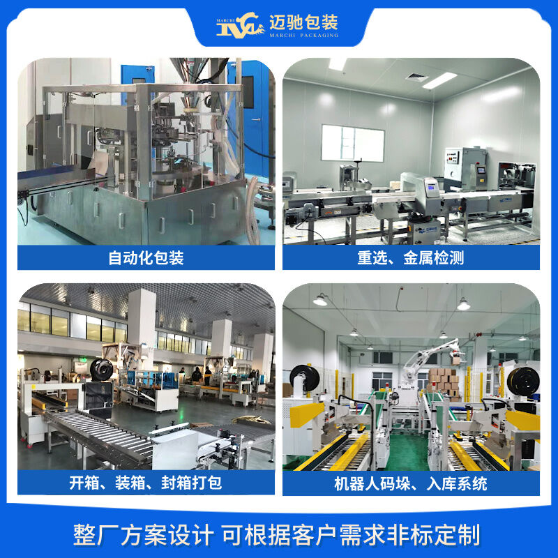迈驰,是一家专业生产全自动给袋式液体包装流水线的生产厂家,无滴漏、高精度,可根据物料不同特性定制包装流水线设备,一对一定制化服务,26年包装行业经验助力生产企业将本增效,提高产能。