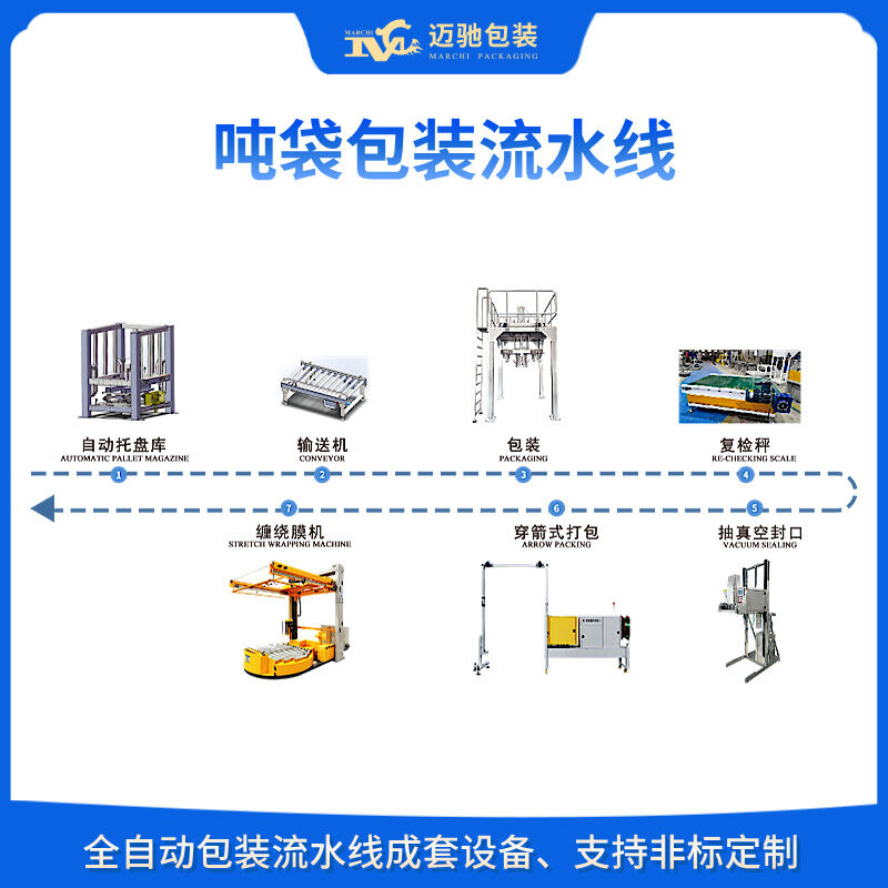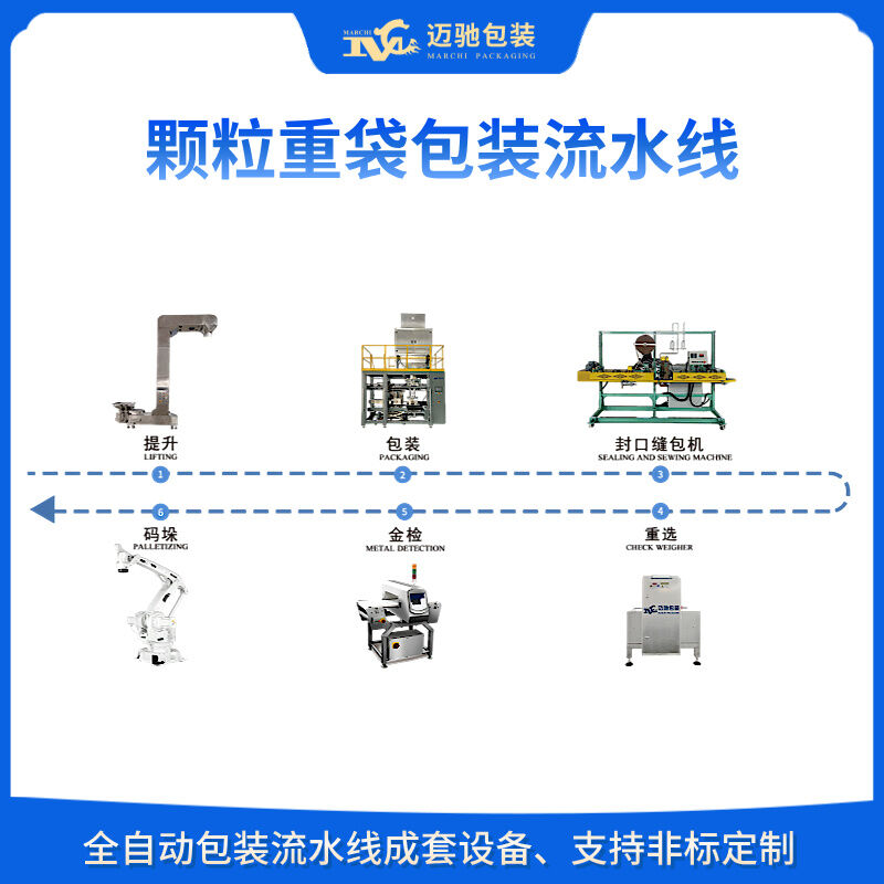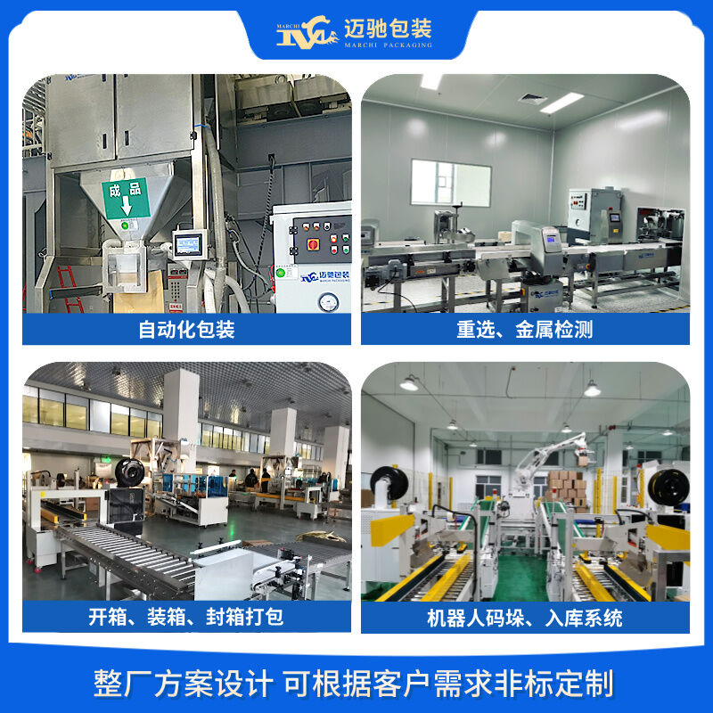 迈驰,是一家专业生产全自动5-25kg颗粒包装流水线的生产厂家,无扬尘、高精度,可根据物料不同特性定制包装流水线设备,一对一定制化服务,26年包装行业经验助力生产企业将本增效,提高产能。
